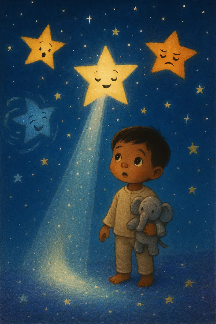 A child named Cruz helps sleepless stars learn to rest through song, counting, and gentle comfort before returning home to peaceful sleep.