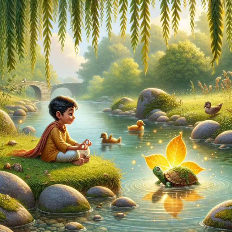 “Once a year,” the turtle explained, “the oldest oak tree at the river’s beginning sends one perfect leaf downstream. Whichever child is kind enough and patient enough to follow it receives a gift—the gift of calm.”