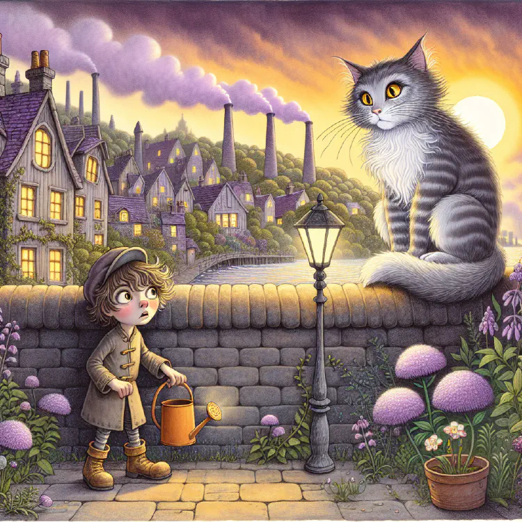 In the crooked little town of Whimsy-on-the-Wind, where the lampposts leaned left and the chimneys always puffed purple smoke, there lived a very curious child named Sage.