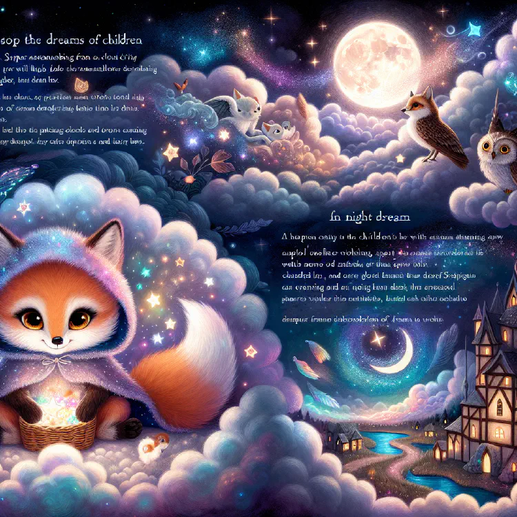 High above the sleepy town, where moonbeams dance and play, there lived a little fox named Jasper in a cloud shaped like a bay. His fur was soft as cotton fluff, his eyes like amber light, and every evening just past dusk, he’d wake to greet the night.