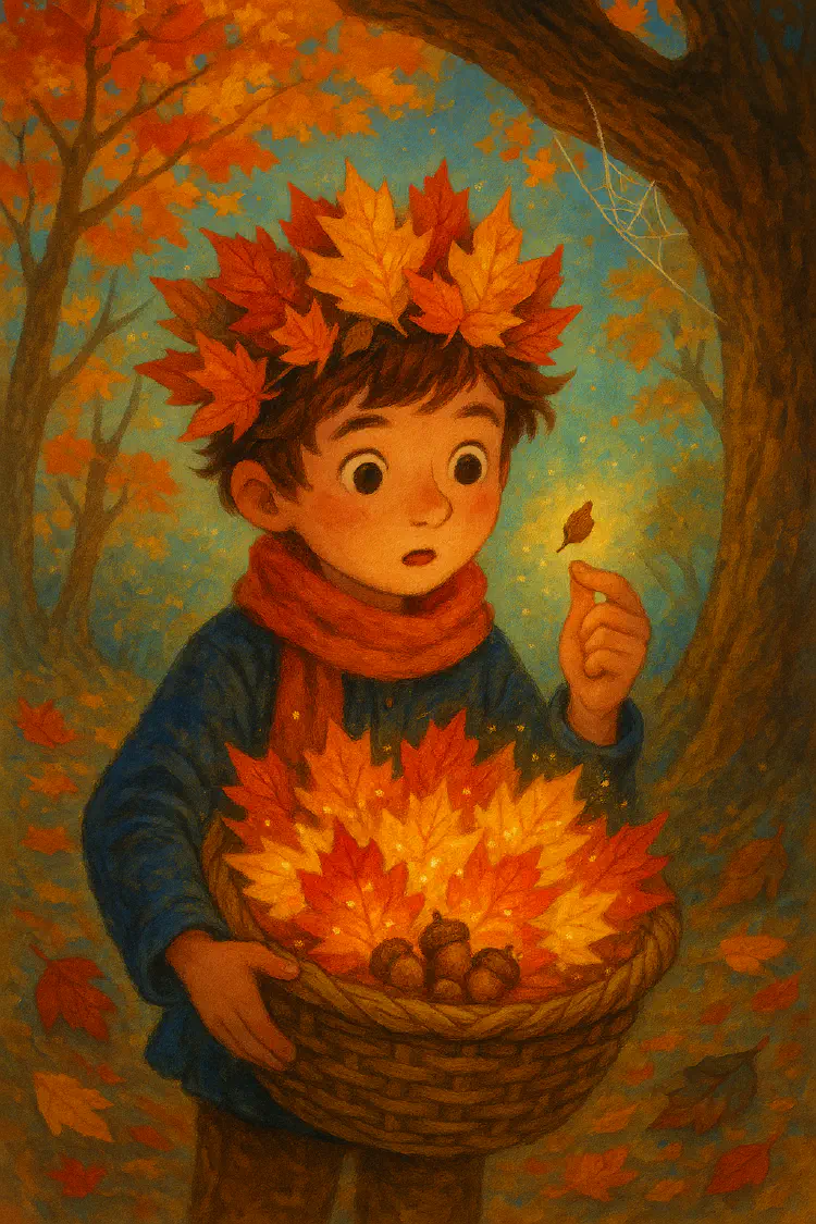 Now, you might think that sounds like an ordinary job, but it wasn’t ordinary at all! You see, in this kingdom, every leaf that fell from every tree held a tiny bit of magic. Red leaves made you giggle. Orange leaves made you warm. Yellow leaves helped you remember your happiest dreams. And the rare golden leaves? Well, those were the most special of all.