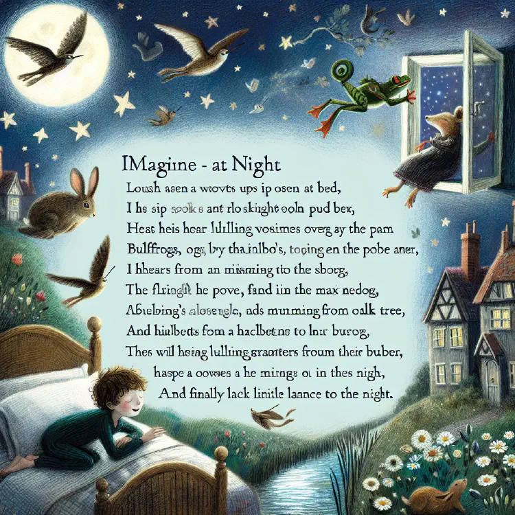 They drifted back over the meadow (where the crickets still chirped), past the pond (where the frogs still croaked), around the forest (where the owl still hooted), and through Jonah’s open window, landing as soft as a feather on his pillow.