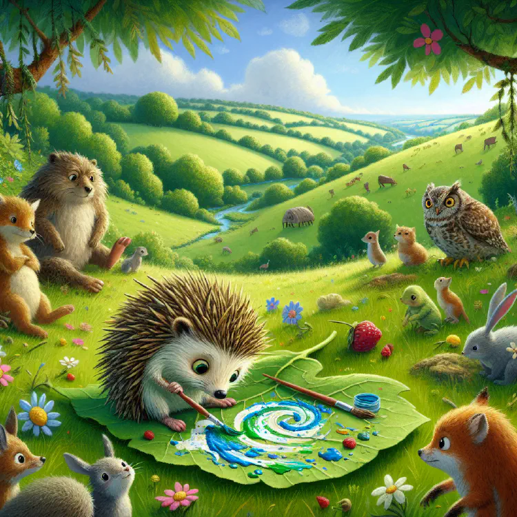 Once upon a time, in a lush green meadow nestled between rolling hills, there lived a little hedgehog named Ethan. Ethan was different from the other hedgehogs in the meadow. While they spent their days foraging for berries and insects, Ethan dreamed of creating beautiful art.