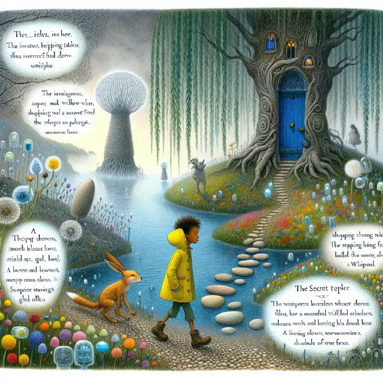 In the center of the island stood a magnificent willow tree, its branches sweeping the ground like a grandmother’s long hair. Beneath it sat a very small door, painted midnight blue, with a knocker shaped like a curled-up fox.