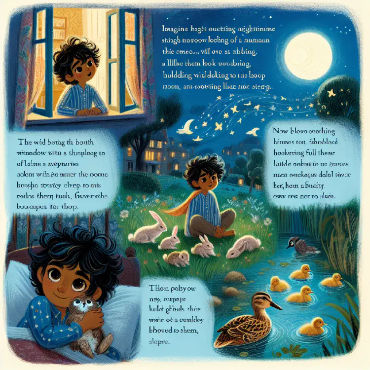 To his surprise, the Wind replied, its voice as light as a feather, “Oh, hello there, young Miles! I’m singing the Bedtime Song, a special tune that helps all the creatures of the world fall asleep.”