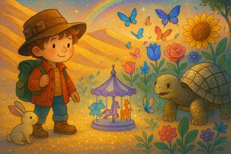 “Then I’ll be here. I’m always here. Tortoises are very good at that.” Meridian’s shell-mirrors winked. “Oh, and Beau? The journey past the Shimmering Dunes isn’t just about reaching the garden. It’s about choosing to explore instead of turning back. You chose well today.”