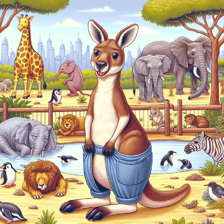 In the middle of the Sunnybrook Zoo lived a kangaroo named Iris who had the most wonderful pockets. Not just one pocket, mind you, but two! One on each side, deep and cozy and perfect for keeping things.
