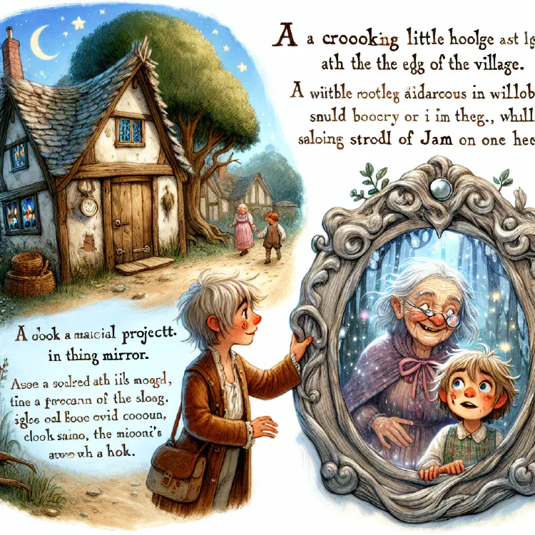 One rainy afternoon, while Grandmother Maple was baking blueberry crumble, Sage discovered a dusty sheet in the corner of the attic. Underneath sat an enormous mirror with a frame carved from silver wood, decorated with tiny moons and stars.