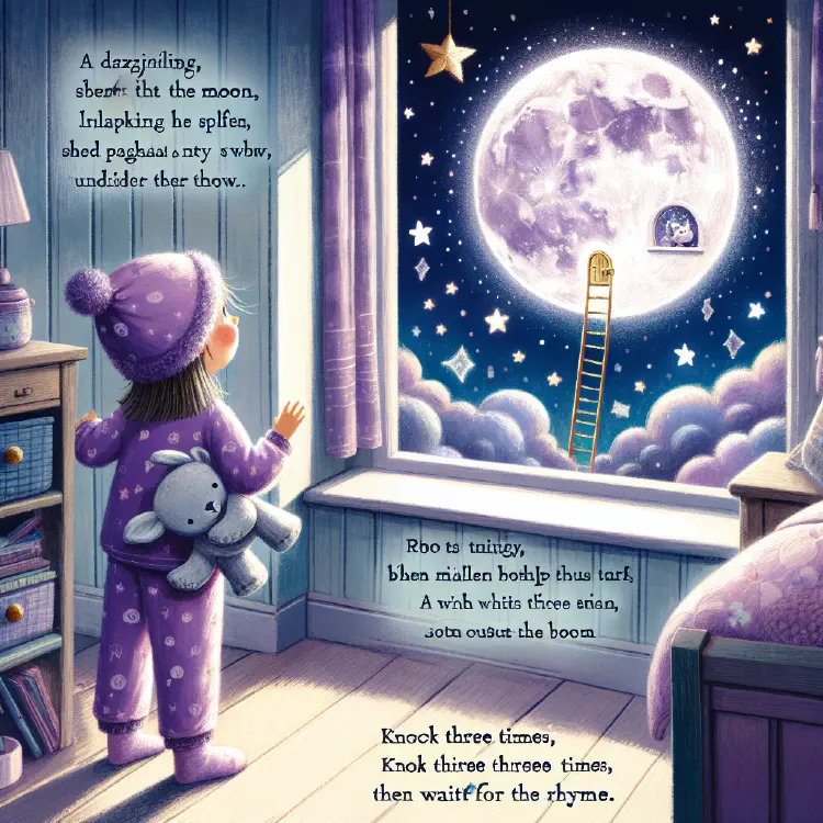 Before Lulu could even blink twice, a silvery ladder made of moonbeams tumbled down from the sky and landed with a soft plink right outside her window.