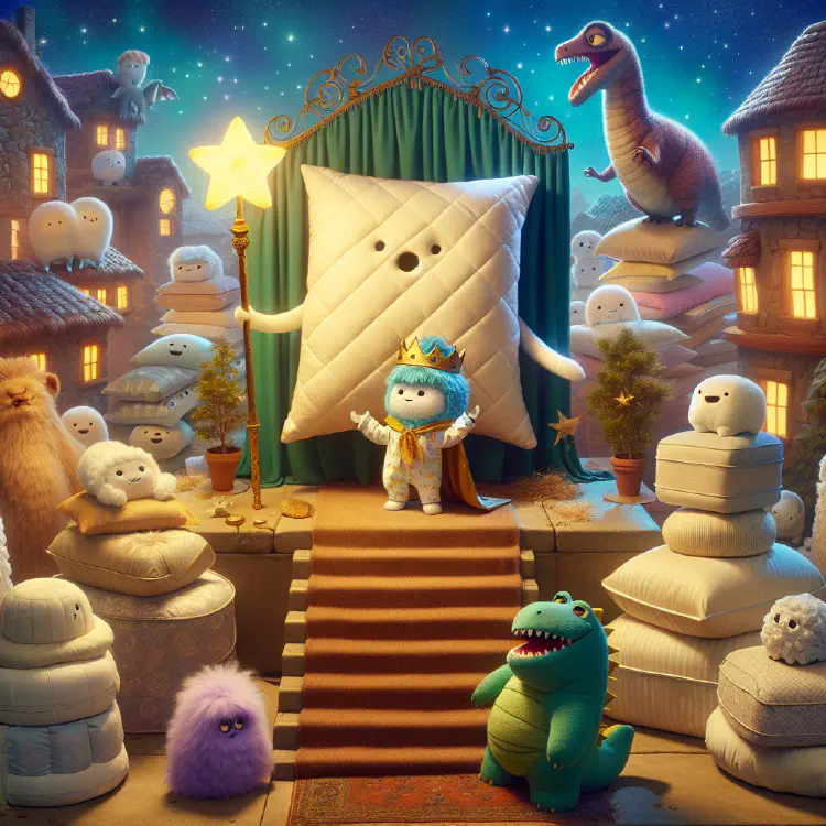 Pillow Town was exactly what it sounded like. The houses were made of pillows—some striped, some spotted, some as fluffy as marshmallows. The streets were lined with silky pillowcases that rippled like gentle streams. Even the trees were topped with tufts of pillow stuffing that swayed in the breeze like the softest snow.