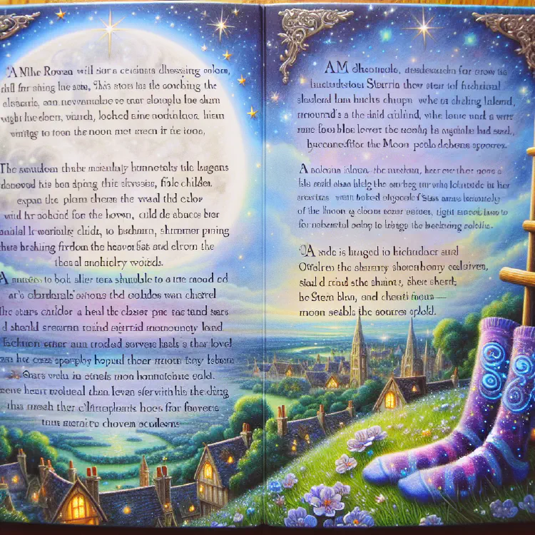 High above the sleepy town, where rooftops touched the sky, lived a little child named Rowan who loved to wonder why. Why the moon was round and bright, why the darkness came at night, and most of all, where stars went when the morning brought its light.
