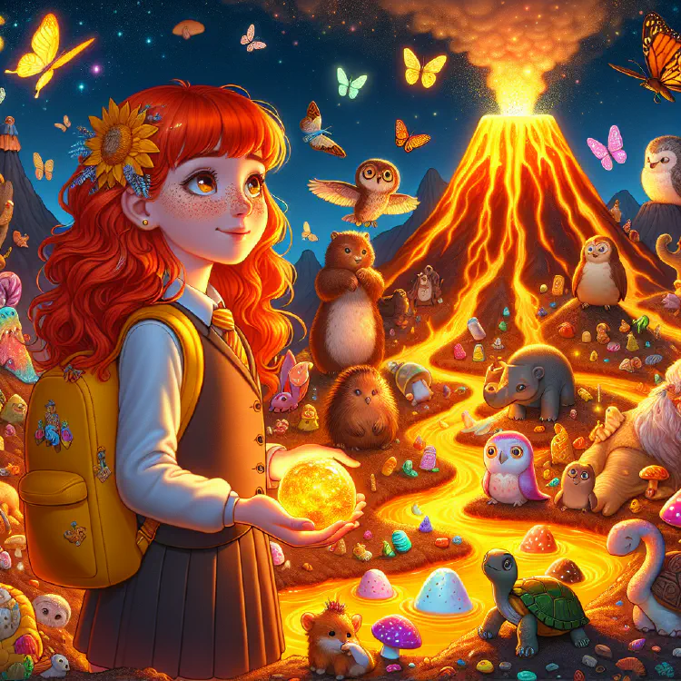 One morning, Aurora discovered something peculiar on her doorstep: a smooth, warm stone that sparkled like melted sunshine. When she picked it up, it whispered in a bubbly voice, “Follow me! Follow me to the Hidden Volcano!”